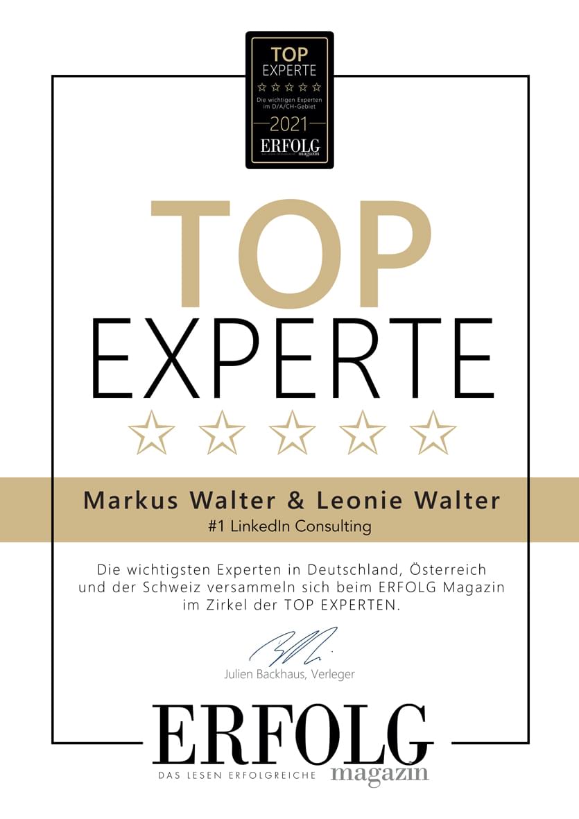 Seit über 20 Jahren arbeiten Leonie & Markus Walter als Unternehmerpaar Seite an Seite. Sie verhelfen Dienstleistungs- und Beratungs-Unternehmen als Premium-Anbieter sichtbarer und erfolgreicher mit ihrem Business zu werden.
